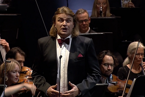 Mit seiner bekannten, leichten Tenorstimme interpretiert er die romantischen Lieder. Leider ist die Stimme und der Ausdruck doch sehr eindimensional, es fehlen die Farben, die Facetten und die Nuancierungen im Ausdruck. Auch die Körperspannung, sein Gestus und seine Mimik lassen den emotionalen Ausdruck vermissen. So singt er die Lieder zwar technisch sauber und schön, aber sie berühren nicht, und das ist vor allem bei den folgenden Liedern