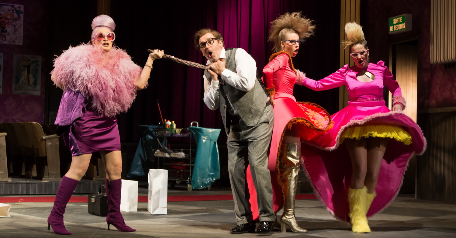 Bei Regisseur Roman Hovenblitzer setzt die Handlung bei einer Filmpremiere von Cinderella an. Der Star des Films ist natürlich der heiß begehrte Märchenprinz, der im Kino, wo die Filmpremiere stattfindet, das erste Mal auf Lucette, die Tochter des Kinobesitzers – Pandolphe – sowie auf deren schrullige Stiefschwestern nebst Stiefmutter trifft, die Lucette Cendrillon rufen. Bühnenbildner Bernhard Niechotz lässt dabei die Herzen der Lokalpatrioten höherschlagen. Das Kino erinnert an das schöne Schlosstheater, eines der letzten alten Lichtspielhäuser in Münster. In den Videos von Oliver Berg taucht immer wieder der Erbdrostenhof auf. Immer wieder vermischen sich Film und Bühnenhandlung, perfekt abgestimmt. Das optische Vergnügen wird noch zusätzlich gesteigert durch die wunderbaren Kostüme, ebenfalls von Niechotz. Er verbindet geschickt Klassik und Moderne, Schrilles und Schlichtes. Am Theater Münster wird beim Bühnenzauber endlich mal wieder nicht gekleckert, sondern auf höchstem Niveau geklotzt.