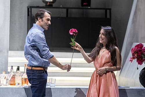 Schon hier ahnt man, dass es mit einer Entführung aus einem Serail nichts wird. Regisseur Philipp Kochheim will von einer orientalischen Oper nichts wissen, sondern konzentriert sich mit seinem Dramaturgen Frederik Wittenberg auf die beiden Dreiecksbeziehungen, die das Libretto offenbart. Dafür werden sowohl der Chor als auch die historischen Dialoge aus dem Ablauf gestrichen und eine neue Vorgeschichte geschrieben. Es geht um Konstanze, die freiwillig seit einem Jahr bei ihrem Bassa Selim wohnt. Ihre Freunde Blonde und Pedrillo dürfen zu Gast sein, was den Sicherheitsbeamten Osmin im letzteren Falle nicht freut.