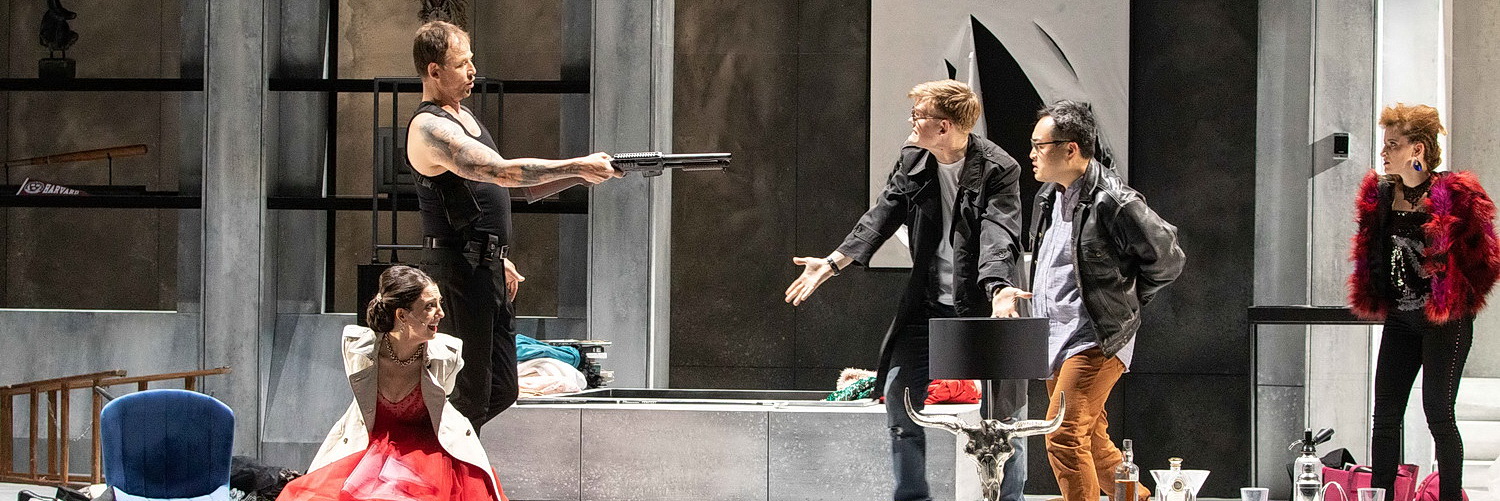 Es hätte eigentlich eine Wiedergutmachung sein können. Als man zu Beginn des Jahrtausends Wagners Ring in Münster erfolgreich zelebrierte, wurde 2003 Mozarts Entführung aus dem Serail gefühlt „mal eben zwischendurch“ als Spielplanergänzung gespielt und so fiel das Ergebnis dann auch aus. Die Aufführung ist nur deshalb noch im Gedächtnis geblieben, weil ein junger Tenor namens Daniel Behle einen Gastauftritt als Pedrillo hatte. 16 Jahre später ist es vor allem das Bühnenbild von Emily Bates, das die szenische Pleite von damals ausgleichen möchte. Als sich der Vorhang hebt, blickt man in einen großen Designerwohnraum. Bassa Selim interessiert sich offenbar für moderne Kunst und kann sich ein Luxus-Leben leisten. Mit vielen Details gelingt es Bates, dass das Einheitsbühnenbild über drei Akte nicht langweilig wird, und das ist schon eine Leistung.