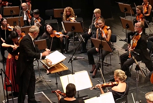 Midori Goto, mehrfach ausge­zeichnete Solistin des Abends und inzwi­schen als Erste Konzert­meis­terin tätig, überrascht mit ihrem virtuosen, ausdrucks­starken Violin­spiel. Aller­dings hat sie mehrfach Probleme, die zarten Violin­k­länge gegenüber dem großen Orchester hörbar zu machen. In den vier Sätzen der Fantasie nutzt Bruch die ganze Klang­weite eines etwa fünfzig­köp­figen Orchesters, in dem Solovioline und Harfe im Vorder­grund stehen. Sie setzen melodische Farbtupfer in die eher flächigen, breiten Orches­ter­pas­sagen, die Golo Berg mit weiträu­migem Dirigat führt. Im Schlusssatz Allegro guerriero zieht Golo Berg das Tempo an, lebhafte Hörnerrufe leiten schließlich das Finale ein, die Solovioline erhält Raum für eine gefühl­volle Passage, bevor das Gesamtor­chester zu einem fulmi­nanten Schluss ansetzt. Die Kamera­führung der Aufzeichnung wählt die üblichen Einstel­lungen vom Nahaus­schnitt bis zur Raumto­talen. Bedau­erlich ist, dass die Kamera der Solistin zwar immer wieder über die Schulter schaut und  die unglaub­liche Finge­r­akro­batik von Midori Goto in Großauf­nahme zeigt, dabei aber oft vergisst, dass auch ihr Gesicht mitspielt,  dessen Ausdrucks­stärke der Zuhörer gern häufiger gesehen hätte.