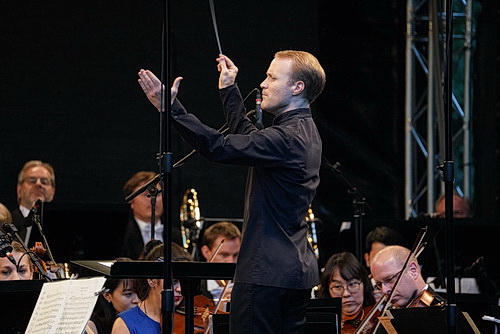 Mit dem nächsten „Klassik-Schlager“, dem Ungarischen Tanz Nr. 1 von Johannes Brahms, gelingt der Stimmungswechsel zur Peer-Gynt-Suite Nr. 1, aus der die Kammerakademie Morgenstimmung, Anitras Tanz und In der Halle des Bergkönigs vorträgt. Mit dem Vorspiel zur Oper Die Meistersinger von Nürnberg von Richard Wagner schließt der erste Teil. Ob solchermaßen populäre Musik in einem Konzertsaal für Begeisterung sorgen könnte, weiß man nicht. Hier unter freiem Himmel ist es genau das Richtige. Und nach der Pause geht es mit einem ganz besonderen Schmankerl weiter.