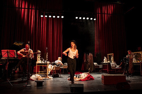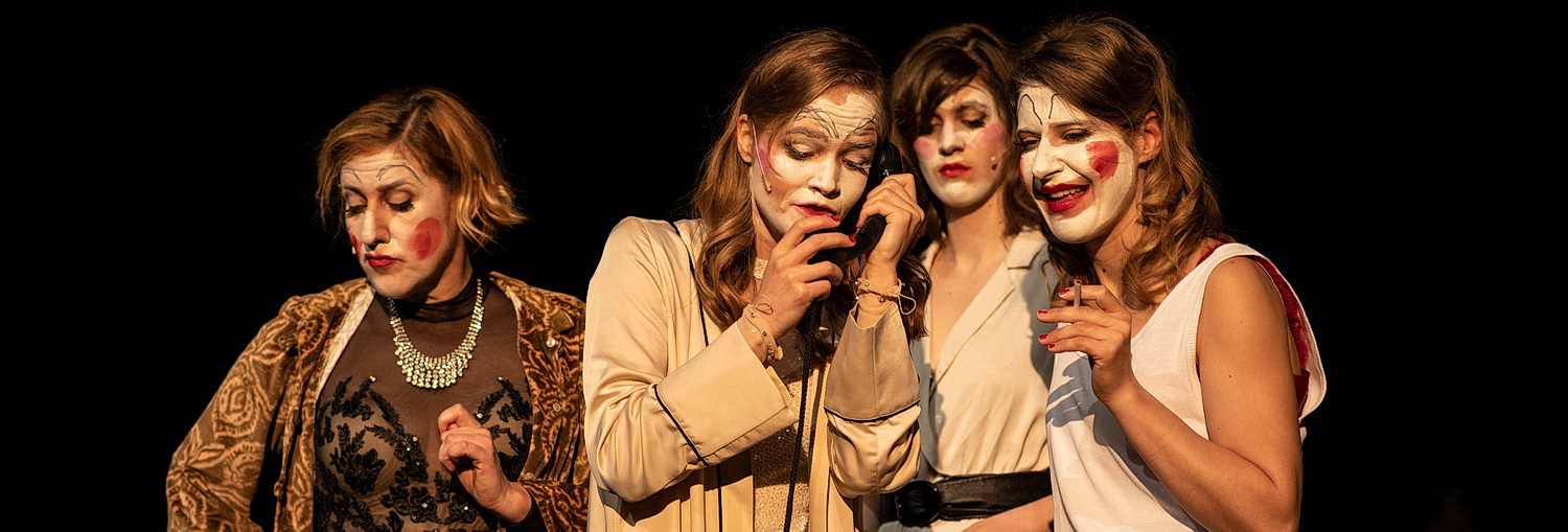 Es empfiehlt sich, vor dem Besuch der Aufführung einen Blick auf die Biografie der Marie Magdalene Dietrich, 1901 in Berlin geboren und 1992 in Paris verstorben, zumindest bei Wikipedia zu werfen, um all die Anspie­lungen und Zitate, aus denen Garofalo sein Stück zwischen den Musiken zusam­men­setzt, erkennen, einordnen und genießen zu können. Denn der Drama­tiker setzt nicht darauf, die Biografie chrono­lo­gisch nachzu­er­zählen, was bei dem Leben der Schau­spie­lerin und Sängerin vermutlich auch mehrere Stunden in Anspruch nähme, sondern verdichtet die Faszi­nation der Dietrich auf ihr Seelen­leben. Um das auch nur einiger­maßen greifbar werden zu lassen, braucht Garofalo gleich vier Dietrich-Darstel­le­rinnen. Stolz greift die Vorlage dankbar auf und entwi­ckelt daraus über weite Strecken nicht nur eine gelungene Insze­nierung, sondern vielmehr eine Choreo­grafie – zumindest muten die scheinbare Leich­tigkeit und die tänze­ri­schen Einlagen so an.