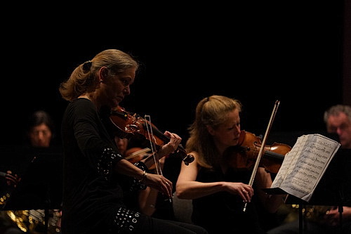 Und das Konzert, das die Kammerakademie an diesem Samstag anbietet, hat wirklich das Zeug, auch von jungen Menschen angenommen zu werden. Denn Isabelle van Keulen hat als Künstlerische Leiterin ein Programm zusammengestellt, das fernab des üblichen Repertoires liegt. Zudem ist das Wetter gerade mal überhaupt nicht geeignet, an einen Grillabend zu denken. Immer wieder verderben kurze Regenschauer den ungetrübten Aufenthalt im Freien.