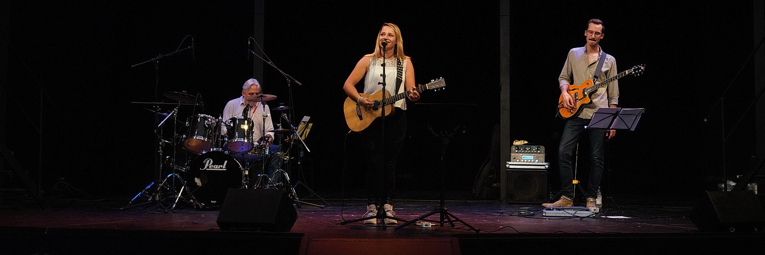 Weil der Schlagzeuger aus Argentinien nicht kommen kann, ist Vater Krum eingesprungen. Die 67 Jahre, die er bislang gelebt hat, sieht noch hört man ihm an. Oder vielleicht gerade. Mit viel Erfahrung bedient er das Schlagwerk, zeigt ein feines Gefühl für die notwendige Untermalung. Vom harten Rhythmus bis zur feinfühligen Behandlung der Klangschalen beherrscht er das Portfolio. Unterstützt werden die beiden vom E‑Gitarristen Tobias Kemper, der mit einigen Soli glänzt.