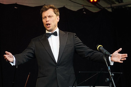 Das Publikum ist vom Standard der Standards absolut begeistert. Aber die schönen Stimmen, eine wunderbare Begleitung und die ausge­machte Freude auf der Bühne machen es ihm auch leicht. Und die Moderation Brodkas setzt dem Ganzen das Sahne­häubchen auf, ruft ein Zuschauer sinngemäß. Recht hat er. Ein paar Regen­tropfen hat es gegeben zwischen­durch, aber das hat kaum jemand bemerkt. Ansonsten herrschte eine wohlige, intime Atmosphäre vor – wie so oft nach solchen Arien­abenden, nach denen man gar nicht sofort nach Hause möchte.