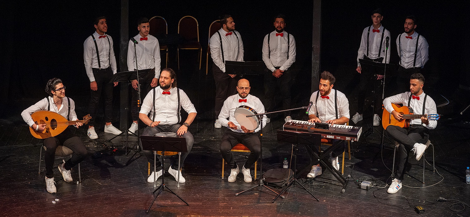 Nach dem Lied Jannah Jannah – was so viel heißt wie Himmel oder Paradies – mit dem der Vorläufer-Chor damals auch im Fernsehen aufgetreten ist, gibt es Lieder über die Liebe und das Leben auf Arabisch. Ein ursprünglich spanisches Volkslied haben die Sänger ebenfalls auf Arabisch und auch eine Strophe auf Deutsch übersetzt, was man nicht sofort erkennt, weil man damit nicht rechnet. Dann aber sind alle im Theater Anwesenden gefordert mitzusingen, wenn es zunächst heißt Freude schöner Götterfunken. Und mit Die Gedanken sind frei hätte es fast noch besinnlich werden können, wäre das Lied vollständig und eine Spur ernsthafter vorgetragen worden. Aber auch so wird es ein großartiger Abend, der mal glatt eine Stunde länger dauert als geplant. Das Publikum, das an den passenden Stellen begeistert mitklatscht, applaudiert ausgesprochen herzlich.