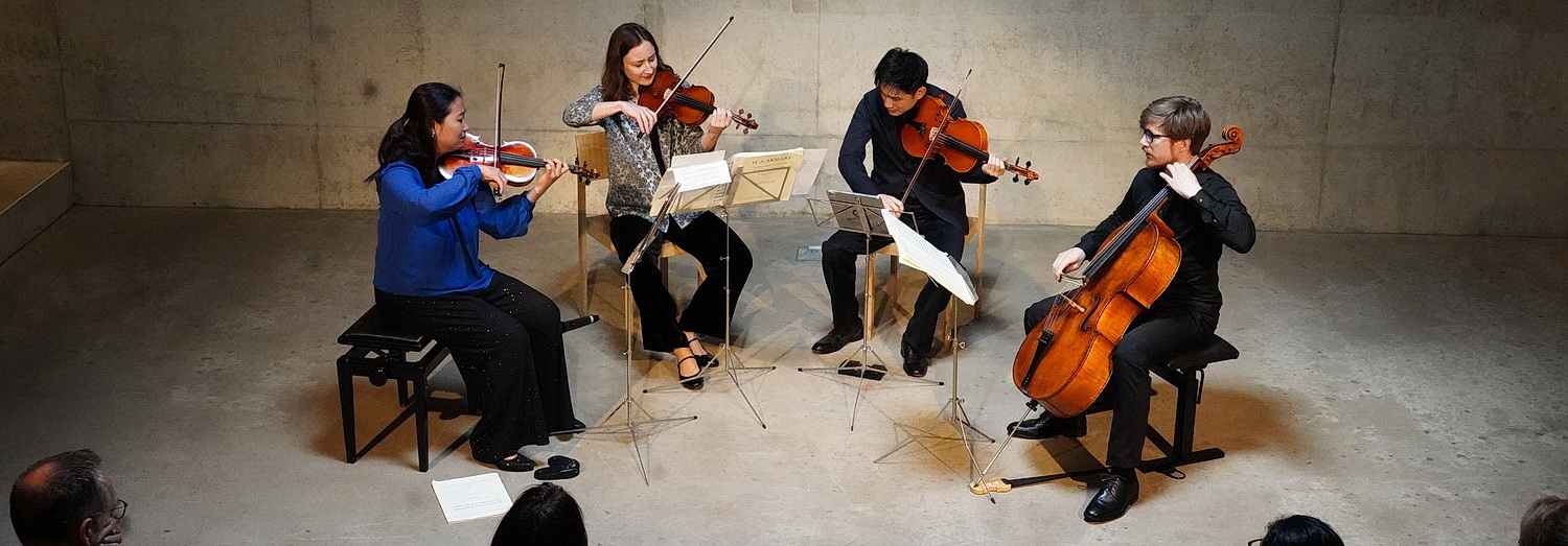 Das Simply Quartet wurde 2018 als rein chinesisches Ensemble in Shangheit gegründet. 2012 übersiedelte es nach Wien, um sich am Joseph-Haydn-Institut der Universität für Musik und darstellende Kunst „intensiv mit der Essenz und dem Ursprung des Quartettspiels auseinanderzusetzen“. In der Folge erspielte das Quartett vier erste Preise bei Kammermusikwettbewerben und entfaltete eine rege Konzerttätigkeit, die bis heute anhält. Die Wiener haben ein vielversprechendes Programm mitgebracht, so dass der Konzertsaal im Untergeschoss des Hauses für Musiker, aufgrund seiner architektonischen Gestalt liebevoll „UFO“ genannt, bis auf den nahezu letzten Platz besetzt ist.