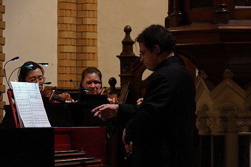 Das Programm entspricht nicht den gängigen Vorstellungen eines Weihnachtskonzerts. Stattdessen steht eine Mischung von Musik aus dem 17. und dem 20. Jahrhundert auf dem Zettel. Vielleicht macht gerade das den Reiz aus, der dafür sorgt, dass kaum ein Platz heute Abend in der Kirche frei bleibt. Immerhin trägt schon mal das Eröffnungswerk von Giuseppe Sammartini, das Concerto grosso in g‑Moll, den Titel Weihnachtskonzert. Das liegt am letzten Satz, der Pastorale. Eine Pastorale ist ein Hirtengesang, meist in wiegendem Rhythmus und in Dur, denn die Engel berichten zunächst den Hirten von der Geburt Jesu Christi, die auf dem Feld wachen. Jedes barocke Musikstück, das sich für Weihnachten eignen soll, beinhaltet eine Pastorale. Mit solcher Eröffnung verdient sich das Orchester erste Lorbeeren. Erstaunlich Quintavalle, der vom Cembalo aus im Stehen dirigiert. Das erlebt man nicht alle Tage, wirkt aber sehr souverän.