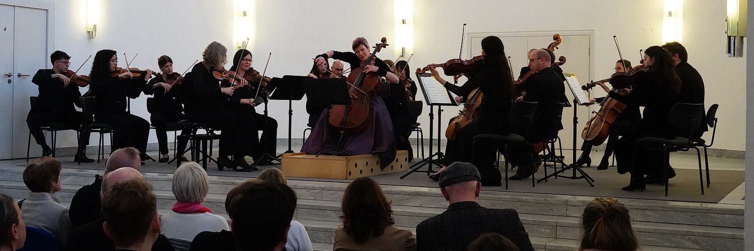 Da gibt es in der Pause ausreichenden Diskussionsstoff, ehe es anschließend in die bekannten Gefilde geht. Für das dreisätzige Cello-Konzert in A‑Dur von Carl Philipp Emanuel Bach hat die Kammerakademie Quirine Viersen aus den Niederlanden eingeladen. Sie zählt, so ist zu lesen, zu den „bedeutendsten Musikerpersönlichkeiten ihrer Generation“. Ein wenig überraschend ist, dass die Solistin vom Blatt spielt, was ihre Virtuosität indes keineswegs schmälert. Eine kleine Zugabe von Johann Sebastian Bach beendet den Ausflug in den Barock.