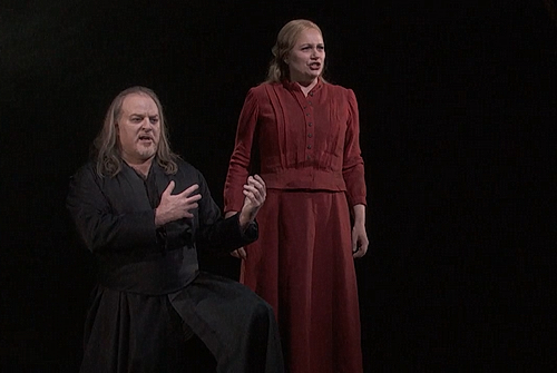 Für Girard ist dieses Werk eine Oper mit dramatischem Stoff im herkömmlichen Sinn, dass die Jenseits-Sucht von Holländer und Senta erörtert. Und so steht ein Psychogramm zweier zerstörter Seelen im Vordergrund der Inszenierung. Einerseits der Holländer, der sich nach dem Tod, dem Nichts, als Erlösung sehnt, und auf der anderen Seite Senta, die in ihrer Seelenverwandtschaft zum Holländer das Gleiche sucht und mit ihm eine Schicksalssymbiose eingeht. Senta beschwört in ihren seelischen Abgründen den Holländer hervor, der sich nach dem Ende, der Annihilation, dem Nichts sehnt. Für Senta ist dieses Sehnen nach dem Unendlichen heroisch und tragisch zugleich, und in letzter Konsequenz erlöst sie den Holländer am Schluss, indem sie mit ihm hinter dem Chor ins Nichts verschwindet. Während die opulenten, fast gemalten Bilder die Inszenierung bestimmen, ist Girards Personenregie dafür eher spärlicher, da spielt sich doch vieles gesanglich ohne große Interaktion ab. So ist vieles mehr Rampengesang mit gestellten Gesten, die optisch größte Wirkung hat hier eindeutig die Szenerie auf der Bühne. Es ist nicht nur ein Abend der imposanten Bilder, es ist auch musikalisch und sängerisch eine Sternstunde Wagnerschen Gesangs. Mit dem Ausdruck der zerstörten, nach Erlösung suchenden Seele legt Evgeny Nikitin die Gestaltung des Holländers an. Mimik und Gestik zeigen die innere Zerrissenheit der Figur. Sein Auftrittsmonolog Die Frist ist um im ersten Aufzug besticht durch ein kräftiges Fundament in der Tiefe und starken Höhen in den dramatischen Ausbrüchen. Sein Ausdruck und sein Gestus bei seiner ersten Begegnung mit Senta sind von einer derartigen Intensität, dass die Qualen, von denen er singt, förmlich sichtbar werden. Das große Duett mit Senta im zweiten Aufzug ist der sängerische Höhepunkt der Aufführung, die beiden Stimmen scheinen fast zu verschmelzen, denn in Anja Kampe hat Nikitin die ideale Senta an seiner Seite. Ihr hochdramatischer Sopran ist von einer unnachahmlichen Leuchtkraft geprägt. Überzeugend ist ihre dramatische Stimmführung, in der Ballade im zweiten Aufzug wechselt sie vom zärtlichen Piano in furienhafte Ausbrüche, und im großen Duett mit dem Holländer harmoniert ihre Stimme mit Nikitin so wunderbar, dass die Seelenverwandtschaft der beiden Figuren auch gesanglich zum Ausdruck kommt. Für Kampe ist es ein mehr als gelungenes Hausdebüt an der Met. Franz-Josef Selig gibt den Daland, der für Reichtum sogar seine Tochter verkauft, mit wohltönendem Bass und großer Textverständlichkeit. Sergey Skorokhodov in der Partie des Erik zeigt, dass er die Kraft für einen jungen Heldentenor hat. Seine Cavatine im dritten Aufzug intoniert er mit großer Leidenschaft. David Portillo überzeugt als Steuermann mit kultiviertem Charaktertenor. Sein Auftrittslied im ersten Aufzug zeigt Durchschlagskraft und lyrische Qualität zugleich und versprüht dabei Spielwitz und Charme. Mihoko Fujimura ist eine Mary mit resolutem Mezzosopran und starker physischer Präsenz.