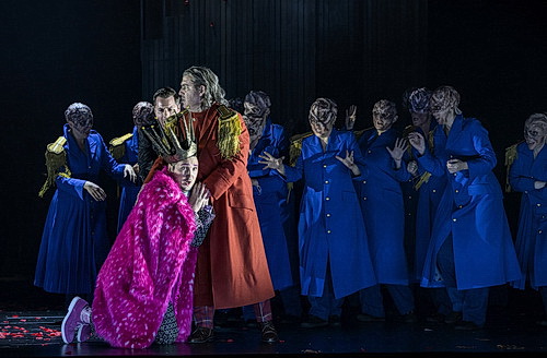 Ihren Regieansatz zieht die Regisseurin konsequent durch. Es ist das Seelenspiel eines Psychopathen, dessen schizoide Persönlichkeitsstörung durch die Prophezeiungen der Hexen zum Vorschein kommt und durch den unheilvollen Ehrgeiz der Lady Macbeth getriggert wird, bis zum logischen Ende im Wahnsinn. Das toxische Bündnis aus Wahn und Machtgier von Macbeth und seiner Lady steht daher im Mittelpunkt der spannenden und beeindruckenden Inszenierung. So sind die Hexen alle mit dem gleichen Mantel gekleidet wie Macbeth, ihre Gehirne sind sichtbar, als Symbol für die Gedankenwelt Macbeths.