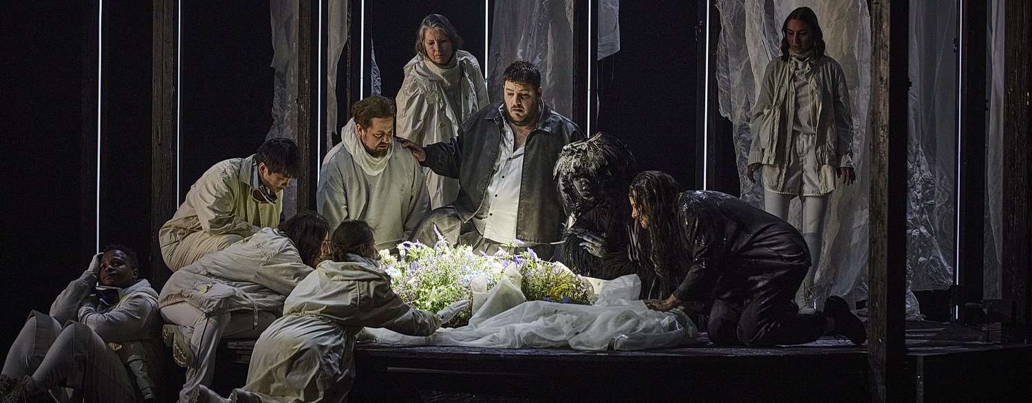 Eigentlich ein Abend zum Vergessen, wäre da nicht ein großartiges Ensemble, das daran erinnert, was das Wichtigste an einer Opernaufführung ist: die wunderbare Musik und der Gesang. Tadeusz Szlenkier singt die Partie des Parsifal mit intelligenter Krafteinteilung. Sein strahlkräftiger Tenor mit baritonalen Timbre meistert die Höhen ohne Probleme, sein Amfortas! Die Wunde! ist erschütternd. Patrick Zielke gestaltet die Partie des Gurnemanz mit fast jugendlicher Attitüde. Mit markantem Bass und beeindruckender Textverständlichkeit legt er die Partie an. Seine große Erzählung im ersten Aufzug singt er spannungsgeladen, mit deutlichen Phrasierungen und Bögen. Besonders eindrucksvoll gelingt ihm das im dritten Aufzug in der Salbungs- und Krönungsszene sowie dem anschließenden Karfreitagszauber. Anna Gabler gibt die Kundry mit erotisch warmem und schönem, jugendlich-dramatischem Sopran sowie klaren Höhen. Jochen Kupfer beeindruckt als Amfortas mit kultiviertem, wohlklingendem Bariton und ausdrucksstarker Leidensfähigkeit. Seine Erbarmen-Rufe sind markant, und die Gestaltung der letzten Szene ist von großer Emotionalität. Wonyong Kang legt den Klingsor mit großer Intensität und sängerischer Aggressivität an und beweist seine enorme Wandlungsfähigkeit, ist es doch gerade mal zwei Monate her, dass er einen umjubelten Leporello in der Neuinszenierung des Don Giovanni gegeben hat. Nicolai Karnolsky gibt den Titurel mit wohltönendem Bass und grandiosem Spiel als „Untoter“, das Alt-Solo von Sara Šetar aus der Höhe ist beeindruckend. Gralsritter, Knappen und Blumenmädchen, aus denen Chloë Morgan herausragt, fügen sich harmonisch in das Gesamtensemble ein.