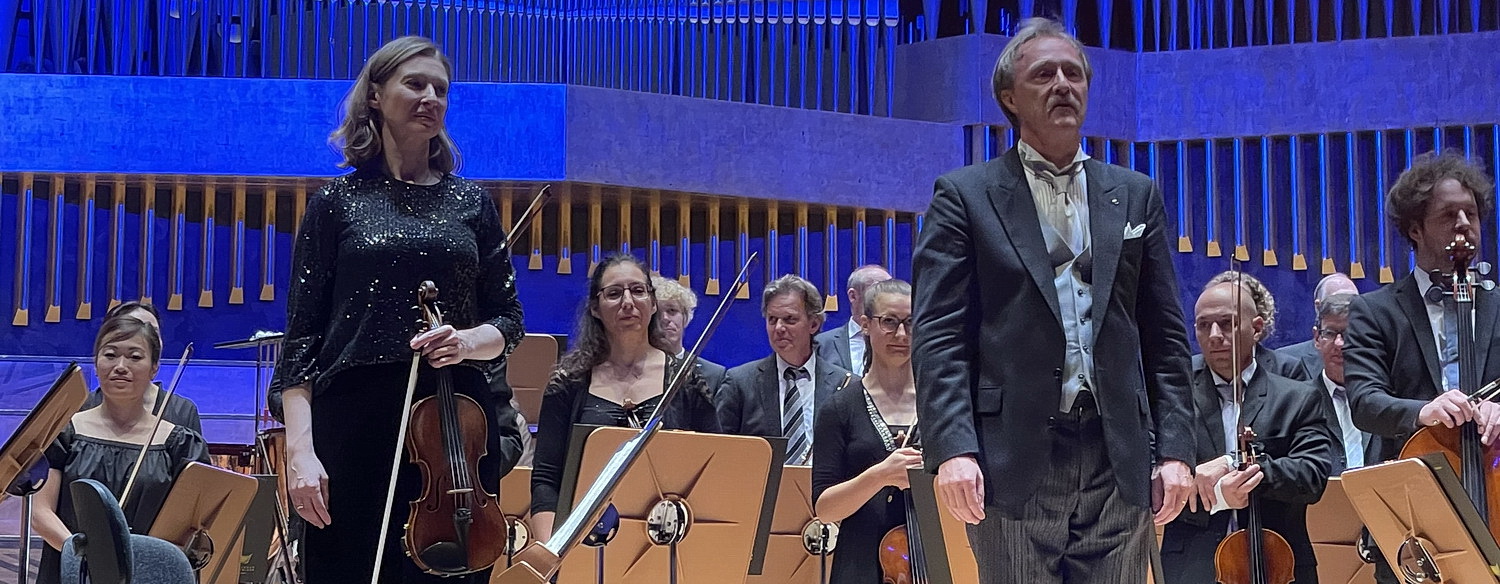 Eigentlich stand zum Schluss des ersten Teils die Motette Ave verum corpus von Wolfgang Amadeus Mozart in einem Arran­gement für Englischhorn und Streicher auf dem Programm. Doch Mayer wendet sich an das Publikum und verkündet, das wunderbare Stück im zweiten Teil zu spielen. Statt­dessen nimmt er die Sinfonia, also die orches­trale Einleitung der Kantate Ich hatte viel Beküm­mernis von Johann Sebastian Bach ins Programm. Die Sinfonia ist eine persön­liche Widmung Mayers an seinen vor kurzem verstor­benen Freund und Kollegen Lars Vogt, der selbst oft mit den Nürnberger Sympho­nikern aufge­treten ist. Gemeinsam mit Reszniak und dem Kammer­mu­sik­ensemble inter­pre­tiert Mayer die klagende Sinfonia mit großer Emotion und Tiefgang. Nach dem Schlusston verharrt Mayer für einige Sekunden mit der Oboe an den Lippen. Es ist ein bewegender Moment, auch für Mayer selbst, und eine wunderbare Hommage an den viel zu früh verstor­benen Dirigenten und Pianisten Lars Vogt.