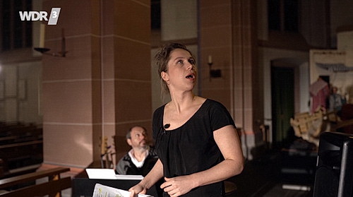 Das Theater Oberhausen macht den Auftakt. Intendant Florian Fiedler hat Die Marquise von O. als Zwei-Personen-Stück insze­niert und als Spiel­stätte die Marien­kirche in Oberhausen ausge­wählt. Aus dem Theater bringt er Schein­werfer mit. Der WDR schickt ein Kamera-Team und Keim als Moderator. Damit unter­läuft der Journalist eine Auffassung, die sich mittler­weile unter den Kultur­schaf­fenden breit­ge­macht zu haben scheint. Denn das „Auffüh­rungs­verbot“ bedeutet ja weder Hausarrest für die Künstler noch ein Arbeits­verbot für Theater­macher. Das Verbot diente ursprünglich dazu, Perso­nen­an­samm­lungen zu vermeiden. Es bedeutet nicht, dass im Theater nicht mehr gearbeitet werden darf.