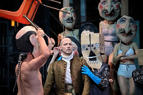 Für diese Masken, wie auch für die Kostüme haben Jeanne Candel und Pauline Kieffer in Farben, Motiven und Stoffen ihrer Fantasie etwas freieren Lauf gelassen und – wieder nach eigener Aussage – bei Pier Paolo Pasolini, Ariane Mnouchkine oder bei Gewändern des osmanischen Reiches ausgiebig Anleihen gemacht.