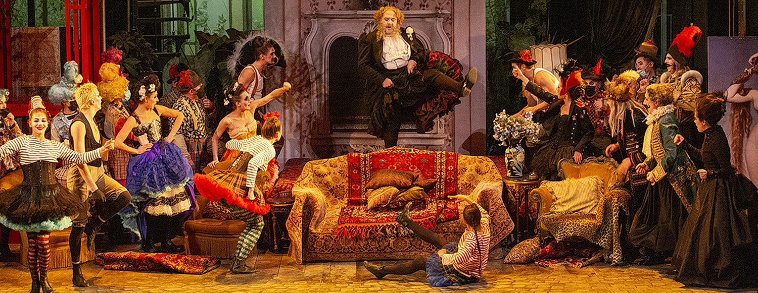 La Vie Parisienne ist für die Pariser Weltausstellung 1867 geschrieben und wird zu einem der größten Erfolge Offenbachs. Paris, „diese Stadt voller Vergnügungen, Freude und Liebe“, ersteht darin wie ein großes Fest, in dem ein Liebesabenteuer das nächste jagt, wie ein mitreißendes, hinreißendes Chaos, in dem alle in entsprechender Verkleidung ihren Platz finden – Adelige ebenso wie reiche Bürger, Hausangestellte oder Handwerker. Die Partitur ist voller Melodien, die zu Gassenhauern geworden sind. Doch da Offenbach bei der Uraufführung mit den stimmlichen Fähigkeiten seiner Ausführenden und vor allem auch mit der Zensur einige Schwierigkeiten hatte, musste er im letzten Moment viele Passagen umschreiben oder streichen. So ist diese Aufführung im Théâtre des Champs-Élysées szenisch wie auch musikalisch in enger Zusammenarbeit mit dem Palazzetto Zane Bru, dem Musikzentrum für romantische französische Musik in Venedig, zustande gekommen. Denn der Palazzetto hat in zweijähriger mühsamer Archiv-Forschungsarbeit die ursprünglich geplante Fassung rekonstruiert, und sie ist es, die hier zum ersten Mal auf die Bühne gebracht wird.