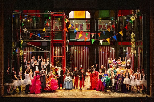 Und noch eine Premiere bietet die Aufführung: Es ist die erste Bühneninszenierung Christian Lacroix‘, den man Jahrzehnte lang als einen der führenden Pariser Modeschöpfer, später des Öfteren schon als custumier von Opernaufführungen gefeiert hatte.