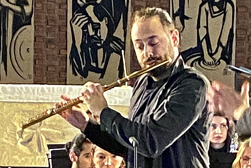 Das Flöten­konzert von Carl Nielsen – in Dänemark 1865 geboren und ebendort 1931 gestorben – wurde 1926 in Paris urauf­ge­führt. Das Konzert hat nur zwei Sätze und zeigt Nielsens einzig­ar­tigen musika­li­schen Stil, der die roman­tische Tradition des 19. Jahrhundert mit Elementen des aufstre­benden Moder­nismus des frühen 20. Jahrhundert verbindet. Das selten gespielte Werk wird hier von Stathis Karapanos inter­pre­tiert, der seine stilis­ti­schen und techni­schen Fähig­keiten auf der Flöte in Verbindung mit dem Orchester auf beein­dru­ckende Weise zeigt. Spiele­risch, leicht­füßig ist sein Dialog mit dem Orchester im ersten Satz Allegro moderato, ebenso auch mit dem Fagott und der Klari­nette. Ernster ist das Motiv im zweiten Satz Allegretto, un poco, als wolle der Komponist auf die vielen Auf- und Abbewe­gungen des Lebens mit dem Soloin­strument hinweisen – Chaos und Harmonie, Streit und Frieden. Karapanos versteht diese musika­lische Kernaussage und setzt sie virtuos sicher und ausdrucks­stark um.