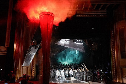 Pzybylski illustriert das Geschehen mit chorischen Vokalisen und irisierenden Orchesterflächen. Naturgeräusche spielen eine wichtige Rolle: Wind, Schnee, Sturm und Tierlaute sind klanglich integriert. Dirigent Grzegorz Wierus hält vom Orchestergraben aus alle Fäden souverän zusammen. Fabelhaftes leistet auch der von Mariusz Otto einstudierte Chor, der seinen umfangreichen Aufgaben mit kultivierter Stimmgewalt und dynamischen Kontrasten gerecht wird. Jan Jakub Monowid als Anhelli und Jaromir Trafankowski als Shaman verleihen ihren Rollen starke Präsenz. Den spektakulärsten Auftritt hat Joanna Freszel, die als Ellenai im goldenen, hautengen Anzug auf einem Reifen heruntergelassen wird und dabei ihre melodischen Phrasen berückend schön singt. Auch das Finale gehört ihr. Von der Proszeniumsloge aus entschwindet sie ins Freie, zu immer schwächer werdendem Vogelgezwitscher.