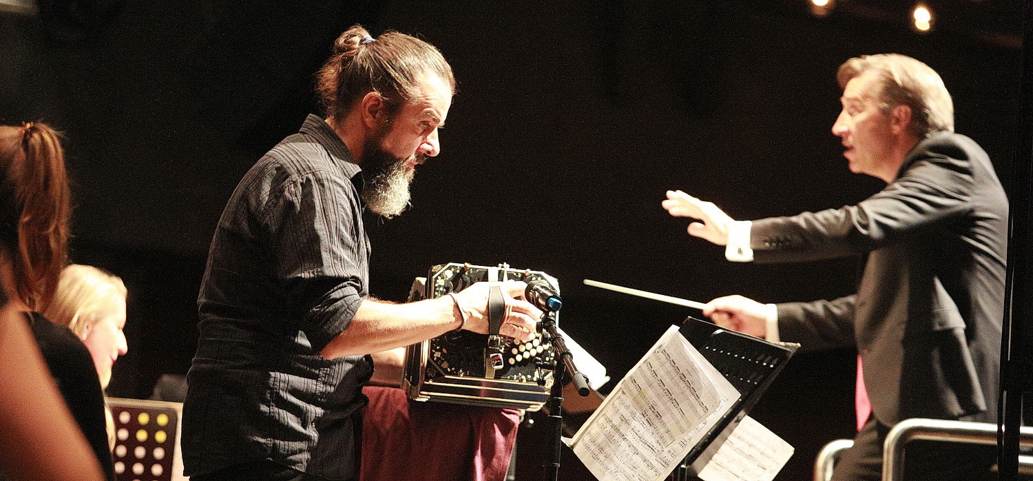 Eigentlich könnte man nach diesem Ereignis nach Hause gehen. Der Dirigent hat im doppelten Sinn wunderbar durch das Programm geführt, das Orchester geglänzt und der Chor brilliert. Aber dann gibt es diese zweite Hälfte des Abends, die alles in den Schatten stellt. Gabrisch erzählt, stellt die Solisten des Stücks vor und erntet anschließend die Lorbeeren für eine Interpretation der Misa Tango von Martín Palmeri, die den Chor in der Vorarbeit in Angst und Schrecken versetzte, ihn an diesem Abend aber zu höchsten Weihen des Chorgesangs führt. Von der Laienschar entfernt sich dieser Chor mit atemberaubender Geschwindigkeit. Wer die verschiedenen Messen anderer Komponisten in Ohren hat, könnte sich kopfschüttelnd abwenden. Eine Messe als Tango? Aber schon beim eröffnenden Kyrie Eleison kennt die Begeisterung keine Grenzen mehr. Glaube, Sehnsucht und Erhabenheit fügen sich in die Musik ein, als könne es gar nicht anders sein, befreit aber vom Bombast, beseelt vom Bandoneon.