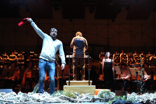 Natürlich nicht. Und die Aufführung des Werks im Rahmen der Ruhrtriennale in der Bochumer Jahrhunderthalle hat nicht das Format, eine sich zunehmend gegen Mitleid abstumpfende Gesellschaft zum Einlenken zu bewegen. Das ist am wenigsten Henzes Musik und der vorzüglichen Interpretation vorzuwerfen, sondern dem wieder einmal untauglichen Versuch, die Ausdrucksschärfe eines Oratoriums durch szenische Visualisierungen vertiefen zu wollen. Das geht meistens schief und auch Kornél Mundruczós Realisierung mit dem Budapester Team Proton Theater bietet nicht viel mehr als optische Dekorationen, die das Geschehen und die Gefühle von Wut und Trauer, die Henze musikalisch so differenziert zum Ausdruck bringt, eher abschwächen.