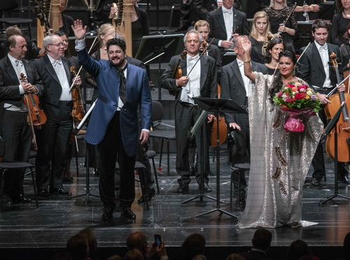 Anna Netrebko und ihr Gatte Yusif Eyvazov singen unter dem Motto A due voci italie­nische Arien und Duette von Puccini und Verdi, mit einem Programm, mit dem sie diesen Sommer auf Tournee waren, zum Abschluss der Salzburger Festspiele.