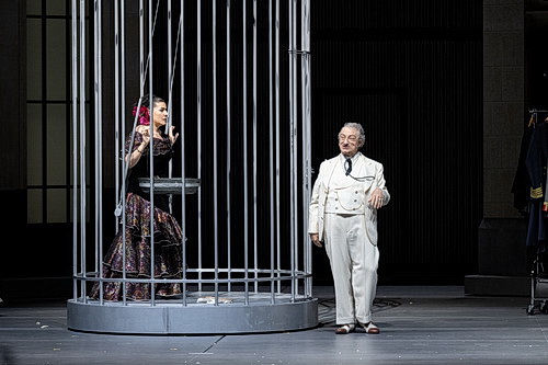 Dass das alles so funktio­niert, dafür sorgt ein extrem spiel­freu­diges Ensemble: Allen voran ist Nicola Alaimo ein idealer Figaro. Buffonesk, mit unglaub­licher Präsenz, dem nötigen Augen­zwinkern und stimmlich in Topform. Er erscheint auf einem winzigen Tretroller mit Luftbal­lonen, bleibt zum Gaudium des Publikums wegen seiner Körper­fülle in einem Armsessel stecken, feilt während Rosinas Kolora­turen im Takt ihre Nägel. Una voce poco fa: Nicht nur mit ihrer Parade-Kavatine, die sie bezeich­nen­der­weise schau­kelnd in einem riesigen Vogel­käfig singt, vermag die Künst­le­rische Leiterin des Pfingst­fes­tivals, Cecilia Bartoli, ein wahres Feuerwerk an perfekten Kolora­turen zu zünden. Ihre Rosina, mit der sie vor 35 Jahren debütierte, singt sie mit wunder­barer Flexi­bi­lität, ihrer ganz eigenen Technik, tiefem Ausdruck und setzt auch noch etliche, rasante Verzie­rungen hinzu. Nach anfänglich kleinen Kolora­tur­un­si­cher­heiten gibt Edgardo Rocha einen sehr flexiblen, höhen­si­cheren Almaviva, ergreifend bei den Lyrismen und am Schluss schon wieder mit einer anderen Dame ungeniert flirtend. Alessandro Corbelli ist ein stimm­ge­wal­tiger und witziger Bartolo. Mit mächtigem Bass und starker Präsenz vernimmt man Ildebrando D‘Arcangelo als Basilio, köstlich als Nosferatu ausstaf­fiert und agierend. Tadellos singen Rebeca Olvera als Berta und José Coca Loza als Fiorillo. Homogen und spiel­freudig agiert der Philhar­monia-Chor Wien, dessen Einstu­dierung Walter Zeh besorgte.