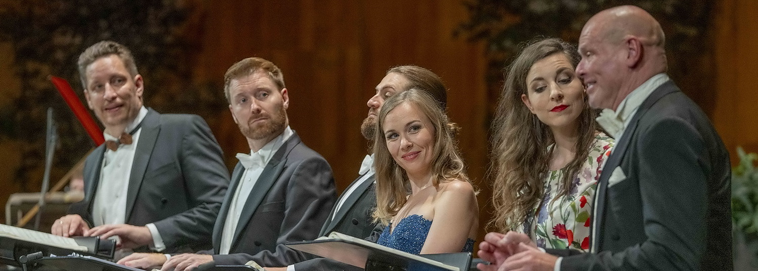 Zudem steht ihm ein ideales, exquisites Sängerensemble zur Verfügung: Elsa Dreisig singt die Gräfin Madeleine mit innigem, silbrigem Sopran und wunderbarem Legato. Bo Skovhus ist ein kerniger, witziger, affektierter Graf. Sebastian Kohlhepp ist der hinreißend schwärmerische und höhensichere Musiker Flamand, Konstantin Krimmel der Dichter Olivier mit schönem, weichem Timbre. Mika Kares gibt den Theaterdirektor La Roche beeindruckend und stimmgewaltig, Ève-Maud Hubeaux ist eine großartige Schauspielerin Clairon. Jörg Schneider singt den Monsieur Taupe mit hellem Tenor. Köstlich witzig: Tuuli Takala und Josh Lovell wunderbar als italienisches Sängerpaar.