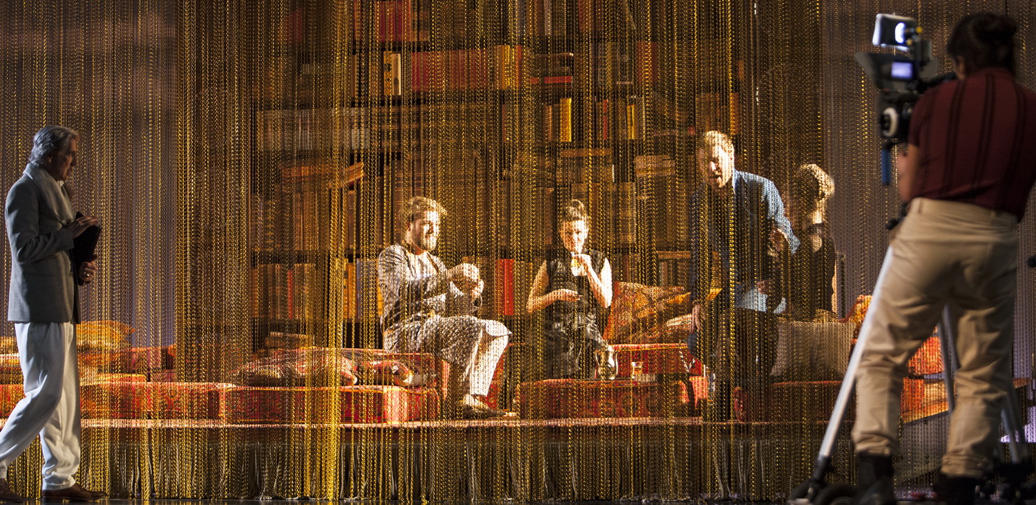 Er ist nahezu omnipräsent: Von Anfang an wird Bassa Selim und sein Lebens­schicksal bei Wolfgang Amadeus Mozarts Die Entführung aus dem Serail bei der Salzburger Mozart­woche in den Mittel­punkt der Insze­nierung von Andrea Moses gestellt. Mit weißem Seiden­schal, weißer Hose und Leinen-Sakko, wie ein Double von Regisseur Hans Neuenfels gekleidet, ist er ein heutiger Filmre­gisseur, der seine westliche Heimat verließ und in die Türkei auswan­derte, zum Islam konver­tierte, weil ihm seine geliebte Frau von einem Neben­buhler ausge­spannt wurde. Dieses Trauma versucht er nun, mit einem neuen Film über diese Entführung aufzu­ar­beiten. Dass ihm jetzt als nunmehr reicher Mann der Sohn des Feindes und dessen Braut, die er begehrt, in die Hände gefallen ist, ist ihm sehr willkommen. Trotzdem muss er erkennen, dass er gescheitert ist. Denn das finale Nachgeben des Bassa, er wird von Peter Lohmeyer etwas zu exaltiert und manie­riert gespielt, erfolgt nicht aus humani­tären Gründen, sondern aus Zorn mangels anderer Möglichkeit. So kommt aber die zutiefst humanis­tische und verzei­hende Botschaft des Singspiels nicht über die Rampe.