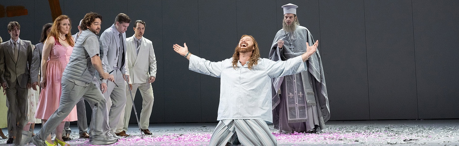 Der Mensch ist wie ein Baum, er braucht Wurzeln“: Es sind bedeu­tungs­schwere Worte, die der Priester Fotis bei seiner Ankunft in dem griechi­schen Dorf von sich gibt. Und es ist erstaunlich, welche Aktua­lität The Greek Passion, die letzte Oper von Bohuslav Martinů über den Umgang mit in Not geratenen Menschen auch heute noch hat. Denn sie handelt von griechi­schen Flücht­lingen, die aus ihrem Dorf vertrieben werden, weil es von Türken nieder­ge­brannt wurde, und jetzt Zuflucht im Nachbardorf suchen. Hier erleben sie Misstrauen und später Feind­se­ligkeit, die vor allem vom Popen geschürt werden. Nur dieje­nigen Einwohner, die gerade ein Passi­ons­spiel vorbe­reiten, zeigen Solida­rität, so wie Manolios, der den Christus spielen soll. Doch alles steuert auf eine Katastrophe zu. Der Pope wiegelt so lange auf, bis Manolios von seinen eigenen Dorfbe­wohnern ermordet wird.