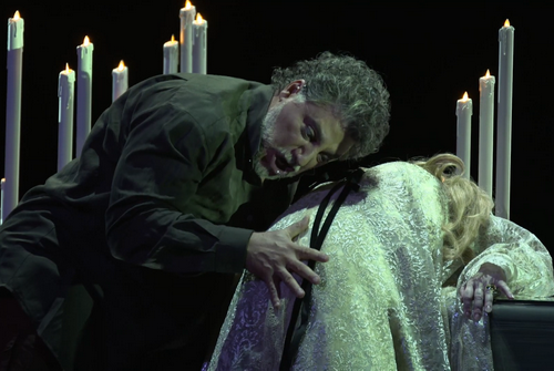 Regisseur Vincent Boussard, sein Bühnen­bildner Vincent Lemaire und Kostüm­bildner Christian Lacroix liefern das ab, was man von ihnen erwartet: schöne Bilder, aller­dings ohne tiefere Deutung. Otello ist ungeschminkt, also weiß. Man möchte politisch korrekt sein, keine Diskus­sionen über Rassismus sollen das schöne Erlebnis trüben. Dabei steckt schon in Shake­speares Othello des 16. Jahrhun­derts, dem Mohr von Venedig, und nicht minder im Spätwerk des italie­ni­schen Risor­gi­mento so viel bleibende Aktua­lität drin. Sei es die Angst vor dem Fremden, nur weil es „fremd“ ist; Integra­ti­ons­wille, gepaart mit Machtgier, bis hin zur Selbst­ver­leugnung, sei es „Königsmord“ durch heuch­le­ri­sches Intri­gan­tentum, und blinde und rasende Eifer­sucht bis zum bitteren Ende.  Da wundert es schon, dass bei diesem Stück auf blanke Ästhe­ti­sierung und Schönheit im Sein gesetzt wird, ohne die psycho­lo­gi­schen Verbin­dungs­ebenen der Protago­nisten etwas tiefer zu beleuchten. Zwischen den Akteuren passiert wenig, man glaubt ihnen einfach nicht, was sie da singen. Rasch erschöpfen sich zudem die hübschen Bilder. Da sieht man ein mit Kerzen bestücktes Bankett, Türen leuchten bedeu­tungsvoll, einmal fällt sogar eine riesige Wand geräuschlos um. Und Desde­monas weißes Tuch, „Corpus Delicti“ ihrer anschei­nenden Untreue, ist in den Video­pro­jek­tionen omnipräsent, damit es auch jeder versteht. Der Höhepunkt scheint erreicht, als die schwarzen Flügel des Todes­engels Feuer fangen. So erscheint diese Insze­nierung mehr Effekt­ha­scherei mit schönen Bildern als schlüssige Perso­nen­regie. Lediglich der Schluss, als Otello seine Desdemona erst erwürgt, um dann in der Erkenntnis seines fatalen Irrglaubens sich selbst zu richten, darf von der schau­spie­le­ri­schen Seite als gelungen bezeichnet werden. Doch das reicht insgesamt für eine bewegende Insze­nierung nicht aus, als Zuschauer bleibt man etwas hilflos und fast schon gelang­weilt zurück.