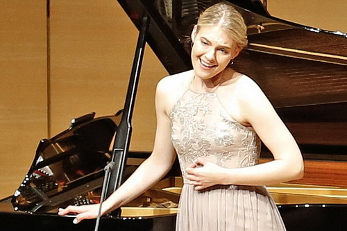 Aber nicht nur äußerlich handelt es sich um einen beson­deren Lieder­abend im gut besetzten Angelika-Kauffmann-Saal. Baikoff ist die zweite Einsprin­gerin. War erst Katharina Konradi vorge­sehen, wurde sie zunächst durch Sophie Rennert ersetzt. Die wiederum musste wegen einer Kehlkopf­ent­zündung absagen, so dass Baikoff ins Spiel kam und innerhalb von einem Tag einsprang. Ein Gewinn, ohne die beiden anderen Sänge­rinnen schmälern zu wollen.