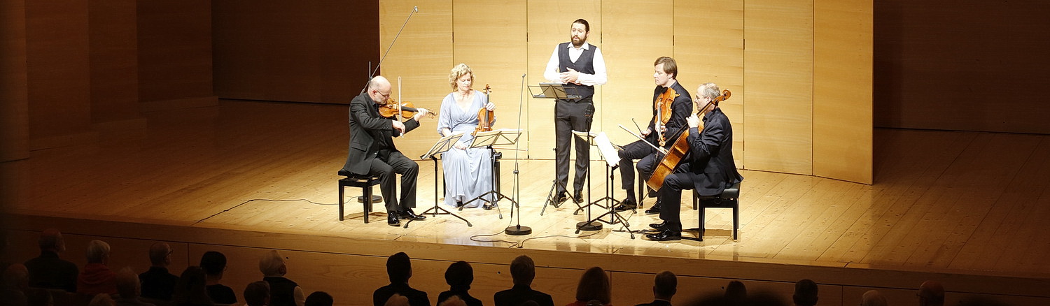 Franz Schubert, der leider schon mit 31 Jahren an Krankheiten starb, die man heute gut heilen könnte, schuf schon im Alter von 18 Jahren Werke wie den Erlkönig. Sein Opus D 112 entstand im Jahr 1814. Es ist noch eng an Vorbilder wie Haydn und Mozart angelehnt, dabei jugendlich und vital. In der Interpretation des Mandelring-Quartetts erklingt es klar, aber etwas distanziert. Nach dem zarten und sehr verhaltenen Anfang folgen deutliche Akzente. Fahl und intensiv kommt der zweite Satz daher, der letzte Satz gestaltet sich intensiver. Primus Sebastian Schmidt gibt seinen Geschwistern Nanette und Bernhard Schmidt und Bratschist Andreas Willwohl deutliche Impulse, stampft auch schon mal mit dem Bein mit. Insgesamt aber wirkt das Ganze etwas zurückhaltend.