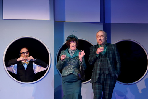 Bei der Umsetzung kommt es auf ein gekonnt abgespultes Uhrwerk an trockenem Witz und ein ideales komödiantisches Timing an. Das gelingt Regisseur Toni Burkhardt zusammen mit seinem Team Wolfgang Kurima Rauschning für die Bühne und Anja Schulz-Hentrich für die Kostüme ganz famos. Klare Personenführung in einem sparsamen, aber die Satire mitatmenden Bild, der Auftritt einzelner Solisten und des Chors wiederholt auch im Zuschauerraum oder in den Proszeniumslogen, wirkungsvolle Komik in Mimik und Gestik machen den Abend zu einem kurzweiligen Vergnügen. Dabei wird die feine Gratwanderung zur Vermeidung von Knallchargeneffekten immer eingehalten.