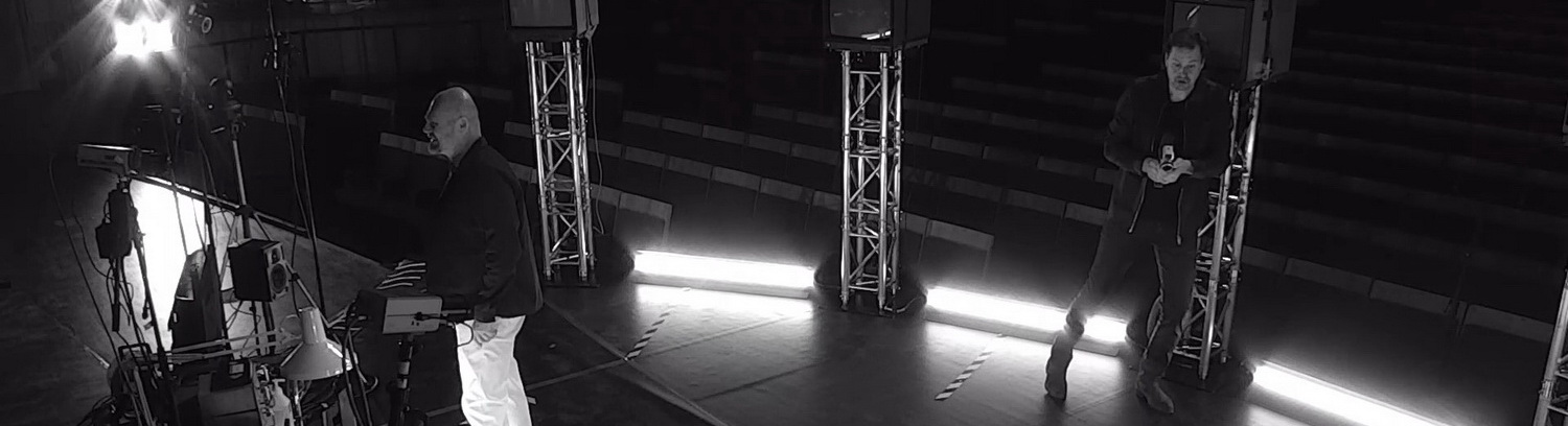 Das Spiel mit der Technik, bestehend aus Monitoren, Kameras und Projek­tionen, ist ebenfalls sehr zeitgemäß und das nicht erst seit Corona. Aber eben auch in dieser Krise läuft vieles über den virtu­ellen Kontakt, und mit dem realen Kontakt ist man plötzlich überfordert. So versucht Giovanni einen Moment nach dem anderen mit einer Handkamera einzu­fangen, scheitert aber letzt­endlich in jeder richtigen Inter­aktion. Übertragen wird die Aufführung in schwarz-weiß, was der Handlung den Charme eines Film noir verleiht. Natürlich ist das Spiel mit der Technik etwas risiko­reich. Prompt verschiebt sich der Start der Live-Übertragung um einige Minuten, und auch den Ton hätte man sich gerne ein wenig sauberer gewünscht.