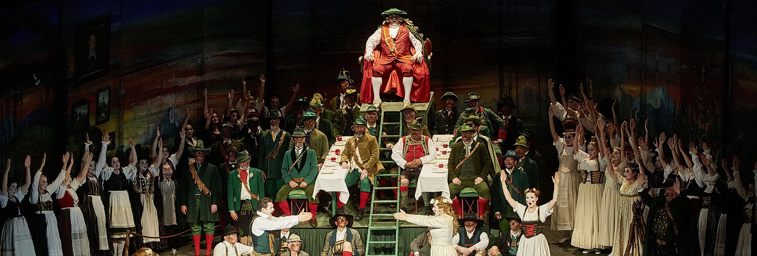 Auch Fürst Ottokar, auf einem Hochstuhl thronend und von oben regierend, ist ein Abbild von Standesdünkel und einer sich den Hierarchien unterwerfenden Bevölkerung. Freyer arbeitet mit allen gängigen Klischees, und indem er sie überzeichnet einsetzt, entlarvt er die Oberflächlichkeit, unter der das Böse, sprich die menschliche Seele als Abgrund lauert. Dieser Freischütz liefert dank greller Überzeichnung die Parodie seiner selbst gleich mit. Die gemalten Prospekte und der märchenhafte Spuk der Wolfsschlucht wirken auf den ersten Blick naiv, bewirken aber für den modernen Betrachter zugleich eine Distanzierung, die auch die problematischen Aspekte der Oper öffnet, nämlich gefangen zu sein in einem System, das Verstöße gegen die Obrigkeit geradezu erzwingt und damit in seinen Aussagen auch heute noch eine Tagesaktualität besitzt.