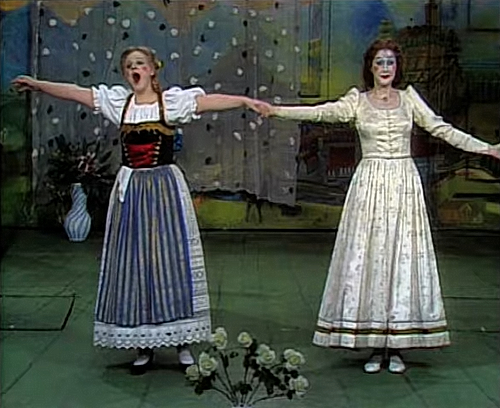 Wie schon im Frühjahr ist es zu mindestens für die Kulturszene in diesem trüben November faktisch zu einem Lockdown gekommen, die Theater bleiben geschlossen. Viele der großen Häuser nutzen die Möglichkeit, Aufnahmen von ihren Produktionen als Stream anzubieten, um nicht ganz in Vergessenheit zu geraten und um diese kulturlose Zeit irgendwie zu überbrücken. So auch die Staatsoper Stuttgart, die mit einer Jubiläumsproduktion aufwartet. Vor 40 Jahren, am 12. Oktober 1980, hatte Carl Maria von Webers Der Freischütz in der Inszenierung von Achim Freyer Premiere. Aus alten Berichterstattungen weiß man, dass diese Premiere ein Riesenskandal war, heutzutage gilt die Inszenierung als Kult. Für eine Woche ist die Produktion nun über einen YouTube-Link zu sehen, die 1981 für das Fernsehen mitgeschnitten wurde und mittlerweile vergriffen ist. Und das ist das Hauptproblem dieses Mitschnittes. Die Tonqualität ist ganz passabel, von einigen wenigen Übersteuerungen abgesehen. Allerdings ist die Bildqualität, gelinde gesagt, eine Zumutung. Das Bild wirkt verwaschen, teilweise unscharf, wie von einer alten Super-8-Kamera aufgenommen. Dazu ist die Kameraführung sehr einseitig und statisch. Das Ganze wirkt wie die Aufnahme einer Schulaufführung, die vom Musiklehrer fürs Schülerarchiv mitgeschnitten wurde. Dazu passt auch die Inszenierung von Achim Freyer, der nicht nur die Regie besorgte, sondern auch für das Bühnenbild und die Kostüme verantwortlich war, quasi als One-Man-Show, nur unterstützt durch die Lichtregie von Hans-Joachim Haas. Wo bleibt der Skandal, möchte man sich fragen, wenn man diese biedere, fast schon puppenhafte Inszenierung in einem gemalten Bühnenbild und in Kostümen, die mehr die Zeit der Uraufführung des Freischütz darstellen als die Zeit nach Ende des 30-jährigen Krieges, in der die historische Geschichte verortet ist. Es ist eine Welt, in der Aberglaube und menschliche Abgründe und Schrecklichkeiten hinter der Fassade bürgerlicher Biederkeit lauern. Freyer stellt Ängste und Aberglauben der Figuren in den Vordergrund, die sich in ihrem Handeln vom Glauben an Gott und Teufel beeinflussen lassen. Die Gesichter der Figuren sind alle grell geschminkt, teils sind sie wie Totenmasken wachsbleich oder schmutzig und kretinhaft entstellt, wie Kasperlefiguren in einem Puppentheater. Freyer beschreibt eine bürgerliche Gesellschaft, die durch den Einbruch des Aberglaubens und unter der Angst vor dem Bösen leidet. Schon vor der Ouvertüre beginnt die Geschichte mit dem Gebet des Eremiten, der die weißen Rosen für Agathe segnet. Die Szene ist mehr Erklärstück für Opernanfänger, die sich das erste Mal mit dem Werk auseinandersetzen, bringt aber für die Dramaturgie recht wenig. Vor dem vermeintlich glücklichen Ausgang der unheimlichen Geschichte über Versagensängste, gesellschaftliche Zwänge und individuelle Glücksansprüche tun sich Abgründe auf und die Macht des Bösen scheint zu triumphieren.