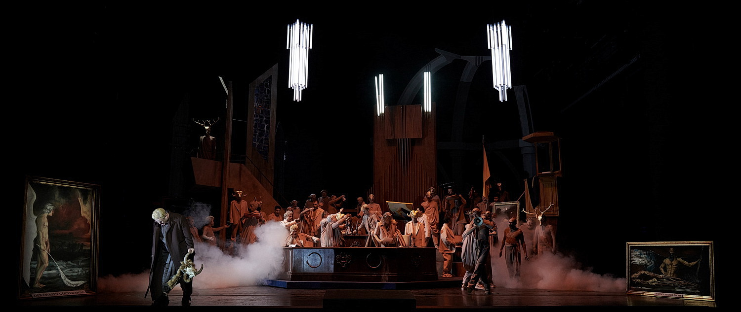 Sängerisch ist die Aufführung auf durchweg gutem Niveau, bis auf wenige Ausnahmen. Christiane Libor ist eine stimmlich wie darstellerisch stark präsente Brünnhilde, die ein breites Gefühlsspektrum durchwandert. Von inniger Hingabe, Enttäuschung und Trauer angesichts des Verrats und der Untreue sowie späte, verständnisvolle Liebe bis in den Tod. Sie bewältigt diesen großen Bogen bis zum Ende mit Bravour, moduliert ihre Stimme mühelos von im piano vorgebrachten Passagen bis hin zu gewaltigen Ausbrüchen höchster Emotionalität. Manchmal forciert sie zu stark, dann wirkt die Stimme etwas schrill. In der Eidesszene muss Libor ganz oben von der Orgelempore singen, da kommt sie gegen das forte im Orchester kaum noch durch, sehr unsensibel von Cornelius Meister dirigiert. Die Begegnung zwischen Brünnhilde und Waltraute ist eine der Schlüsselszenen des Abends. Die Stimme der Mezzosopranistin Stine Marie Fischer, die an diesem Abend ihr Rollendebüt gibt, hinterlässt einen bezaubernden Wohlklang, vor allem in der warmen Mittellage. Wie sie innig, voller Verzweiflung versucht, Brünnhilde zu überreden, ihr den Ring zu geben, um den Untergang Walhalls zu vermeiden, das geht unter die Haut. Ihre teils lyrische, teils dramatische Waltrauten-Erzählung ist ein Höhepunkt des Abends.