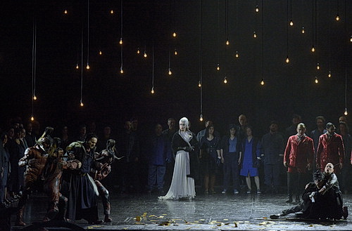 Die Inszenierung ist insgesamt wenig vital, und obwohl die junge italienische Regisseurin den Plot laut Programmheft als reines Märchen sieht, ebenfalls recht nüchtern und mit wenig Poesie versehen. Bei der sehr statischen Rätselszene lässt sie es rätselhafterweise durchgehend schneien. Sehr ansprechend hingegen mit dem schwebenden Lichtern und Geistern ist die Nessun-dorma-Szene und sehr anrührend das helle und strahlende Finale.