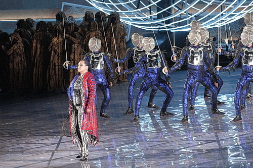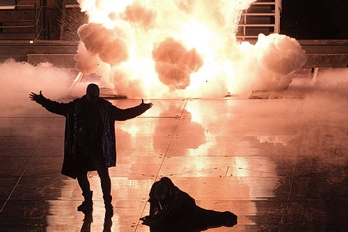Laut Regisseur Stefano Poda liegt die Hoffnung der Menschheit in der Zukunft, in der Wiedervereinigung des durch den Menschen gespaltenen Atoms, wie es das Programmheft berichtet. Dazu schafft das Lichtdesign, das mit der Regieassistenz, den Kostümen und der Choreografie bei Paolo Giani Cei liegt, mit Lasern eine „Kathedrale aus Licht“, die den eingeschlossenen Seelen den Weg aus der Dunkelheit zeigen sollen, den Fokus auf der geistigen Katharsis legend, so Poda. Dem Zuschauer bleibt an diesem Abend die finale Synthese verwehrt, irgendetwas scheint die Bahn der Sphären blockiert zu haben.