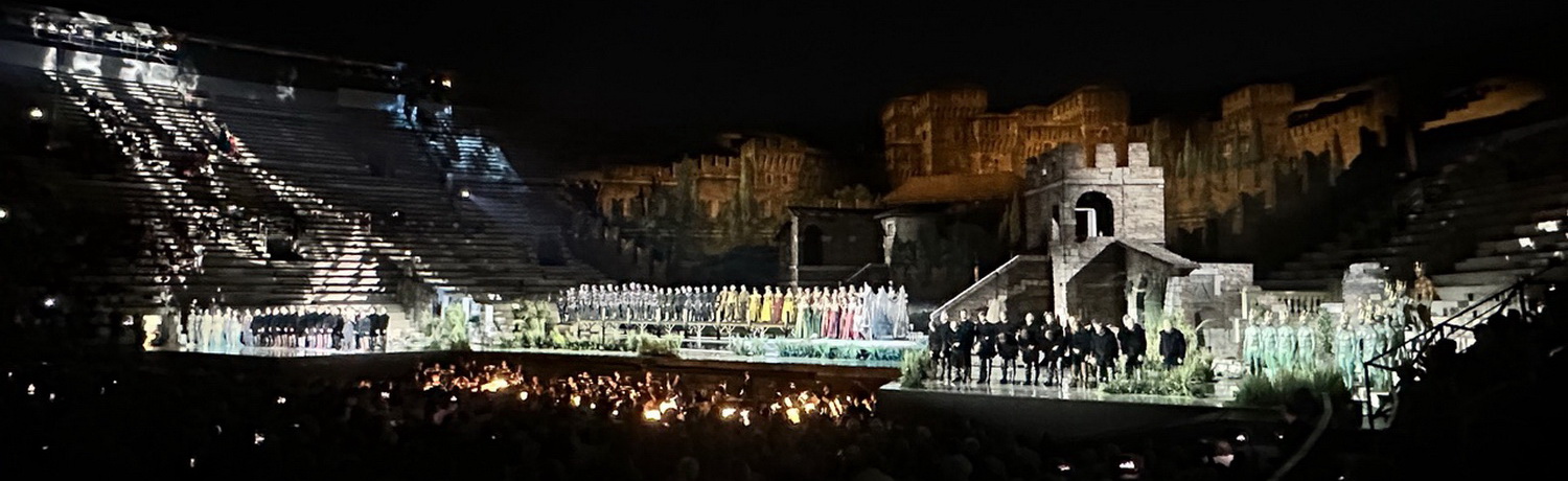 Nach einer Periode bedeckten und regnerischen Wetters macht sich Verona bereit für die letzte Runde der 102. Spiele in der Arena bis Anfang September. Die Premiere von Rigoletto steht an, die Sonne scheint wieder italienisch und unerbittlich vom blitzblauen Himmel. Um die 10.000 Zuschauer strömen von Juni bis September jeden Tag von Donnerstag bis Sonntag in die alte römische Arena, um eine der Inszenierungen hauptsächlich von Opern Giuseppe Verdis, aber auch die Carmen von Georges Bizet oder die Carmina Burana von Carl Orff zu sehen. Die Fondazione Arena di Verona wirbt damit, der „italienischste Ort der Welt“ zu sein, und Touristen aus aller Welt kommen, um dem Phänomen Arena zu huldigen. An diesem Abend wird mit Spannung das Debüt des samoanischen Tenors Pene Pati erwartet. Zudem gibt Martina Belli als Maddalena ihre erste Vorstellung in der Arena.