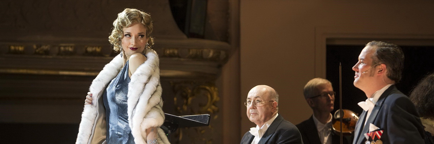 Dabei stammt Pardon, Madame im Original gar nicht aus Ball im Savoy, sondern aus Viktoria und ihr Husar. Diese 1930 in Leipzig uraufgeführte Operette begründete den Ruhm des Komponisten und sie bildet den zweiten Streich in der konzertanten Abraham-Reihe der Komischen Oper. Global geht es in ihr zu. Ein amerikanisches Botschafterpaar wird von Wien erst nach Japan, dann nach St. Petersburg versetzt. Ganz glücklich ist die Ehe nicht, denn die Diplomatengattin Viktoria liebt immer noch den im Krieg verschollenen Husaren Stefan. Der aber lebt, und beim Winzerfest im ungarischen Heimatdörfchen Doroszma findet ihn die mittlerweile geschiedene Viktoria wieder. Am Ende gibt es eine Dreierhochzeit mit zwei weiteren Paaren, so wie es der örtliche Brauch will.