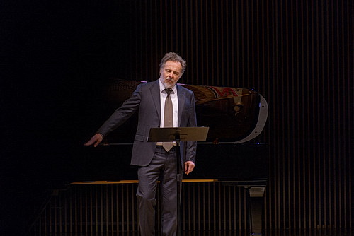 Gerhahers Bariton klingt inzwi­schen sehr hell, tenoral auch in der Mittellage. Schon immer ist er bekannt dafür, dass er den Text absolut verständlich und unglaublich tief durch­dacht präsen­tiert. In Weikersheim wirkt sein Gesang vorwiegend vom Kopf bestimmt, nur selten hat man den Eindruck, dass sich in die Worte ein tiefes Gefühl einschleicht und die Zuhörer ergreift. Manie­riertheit ist dabei, ein bisschen wie beim späten Fischer-Dieskau. Mehr Sprech­gesang als Singen würde man es nennen wollen. Natürlich hat er die Lieder verin­ner­licht, aber er hat sich auf eine andere Art des Vortrags als früher verlegt. Man kann auch nicht immer nachvoll­ziehen, wohin er will. Im Regenlied bleibt das „fromme Kinder­grauen“ seltsam nüchtern und der Text von Klaus Groth im Zusam­menhang ein frommer Wunsch: