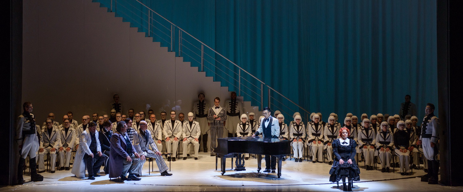 Der Opernchor des Deutschen Nationaltheaters Weimar, verstärkt durch den Extrachor mit Studenten der Hochschule für Musik Franz Liszt Weimar sind durch Markus Oppeneiger stark eingestimmt und begeistern durch sehr genaue Phrasierung und Textverständlichkeit. Kirill Karabits leitet die Staatskapelle Weimar mit großer Intensität. Schon im Vorspiel kommt der wunderbare, differenzierte und farbenreiche Klangkörper zur Geltung. Das Tempo ist moderat getragen, und die Sänger werden von Karabits durch präzise Einsätze und zurückgenommener Lautstärke im Orchestergraben an den Pianostellen sängerfreundlich begleitet. Gelegentlich lässt sich Karabits vom Rausch der Musik anstecken, dann wird es zu laut im Orchestergraben, und es klingt dann sehr blechern. Das Publikum im nicht ganz ausverkauften Weimarer Nationaltheater reagiert sehr enthusiastisch auf diese Vorstellung, großer Jubel für die Protagonisten einschließlich Regieteam, das erstaunlicherweise kein einziges Buh einstecken muss. Leider hat sich die Fraktion der Bronchialrüpel und der Kommentatoren wohl wieder vorab abgestimmt, an den schönen Piano-Stellen etwas Eigenes hinzuzutun. Schade, ein wenig mehr Selbstdisziplin könnte nicht schaden. Und am Ende bleiben doch mehr Fragezeichen hinter einer Inszenierung, die vordergründig mehr versprach, als sie wirklich halten kann.