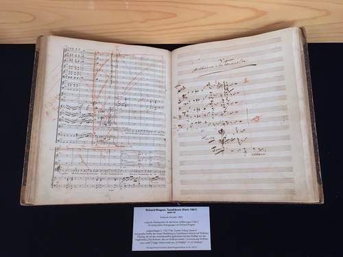 Die Weimarer Aufführungspartitur Liszts von 1849, dazu Liszts Autograph seiner Konzertparaphrase der Tannhäuser-Ouvertüre sowie als besonderes Glanzlicht die berühmte Pariser Aufführungspartitur von 1861 mit Richard Wagners eigenhändigen Eintragungen. Die erläuternden Texte dazu stammen von Christoph Meixner, dem Leiter des Thüringischen Landesmusikarchivs.