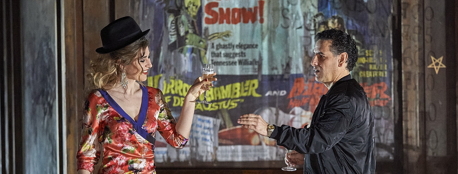 Eine Metro-Station namens Stalingrad, die es wirklich gibt, ein Cola-Automat, eine alter­tüm­liche Telefon­zelle, ein abgeta­keltes Café in den Banlieues, ein Voodoo-Laden, wo der Teufel haust, eine schäbige Wohnung im ersten Stock, wo Marguerite zusammen mit Marthé wohnt. Man sieht auch einen Kirchturm mit Chimären, an Notre-Dame erinnernd: Und dieses Mini-Paris steht kompri­miert auf einer Drehbühne, die Bühne stammt von Aleksandar Denić, wobei alles zusätzlich noch schäbig angekramt, voll Trash ist und völlig überfrachtet wirkt: So ist der neue Faust von Charles Gounod an der Wiener Staatsoper optisch zu erleben, diesmal noch ohne Publikum. Aber so neu ist die Produktion auch wieder nicht, denn sie hatte schon 2016 in Stuttgart Premiere und wurde jetzt im Rahmen der Opern-Einkaufstour von Direktor Bogdan Roščić an die Wiener Staatsoper geholt.