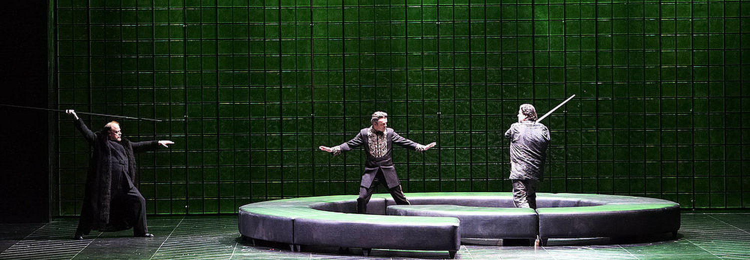 Hagen ist die zentrale Schlüsselfigur in dieser Inszenierung. Gefühlskalt, berechnend und manipulierend. Alles hat er minutiös geplant, um den Ring des Nibelungen zu gewinnen, für sich, nicht für Alberich. Doch er hat die Rechnung ohne Brünnhilde gemacht, die durch den Verrat Siegfrieds von der liebenden Frau wieder zur kühl agierenden Walküre wird, der Hagen nicht ebenbürtig sein kann. Der Vergessenheitstrunk, den Siegfried zu sich nimmt, ist eine schnell wirkende Droge, die ihn sofort abhängig und süchtig macht. Seine vermeintliche Liebe zu Gutrune ist nichts weiter als Begierde. Schnell ist klar, dass das Ende nicht gut ausgehen kann. Das Bühnenbild von Rolf Glittenberg zeigt hier eine zentrale runde Sitzecke, und den schon bekannten Zaun aus dem Vorspiel auf dem Walkürenfelsen. Die Kostüme hat seine Frau, Marianne Glittenberg, kreiert, und sie zeigt die Protagonisten in dunklen, edel und fast zeitlos wirkenden Kostümen. Lediglich die Rheintöchter dürfen sich in Badeanzügen und Hauben im Look der vorletzten Jahrhundertwende tummeln. Im dritten Aufzug besteht das Bühnenbild nur noch aus einem holzähnlichen Aufbau ohne wirkliche Zuordnung. Kleine optische Aufhellung bietet ein Kahn, in dem der Leichnam Siegfrieds liegt, da ist man schon fast an ein Bühnenbild des Tristan erinnert. Die Szene, in der Siegfried in der Gestalt Gunters Brünnhilde auf dem Felsen bezwingt, besticht vor allem durch die Arbeit der Maske, die Stephen Gould in der Rolle des Siegfried für diesen Auftritt so hervorragend geschminkt hat, dass er wirklich ohne Tarnhelm dem Gunther zum Verwechseln ähnlich sieht. Am Schluss dominieren Licht- und Farbprojektionen, die den Weltenbrand zeigen und den Rhein, der über die Ufer tritt und den Brand löscht und eine neue Weltenordnung erschafft. Das Schlussbild, ein engumschlungenes nacktes Paar, symbolisiert den Neubeginn. Das alles ist nichts Neues, in vielfacher Form und Ausprägung schon dagewesen und reduziert zumindest die Inszenierung dieser Götterdämmerung von Regisseur Sven-Eric Bechtolf zu einem banalen, ja, schon beliebigen Operntheater. Lediglich die Lichtregie von Rudolf Zorn und die Videoprojektionen von fettFilm und Friedrich Zorn lassen noch etwas wie emotionale Beteiligung zu, ansonsten versinkt das Setting und die Personenregie in Langeweile. Dass Aufführungen dann doch zu großen Abenden werden, liegt oft in der musikalischen und sängerischen Darstellung. Doch auch hier bleibt die Aufführung hinter den Erwartungen bis auf wenige Ausnahmen deutlich zurück.