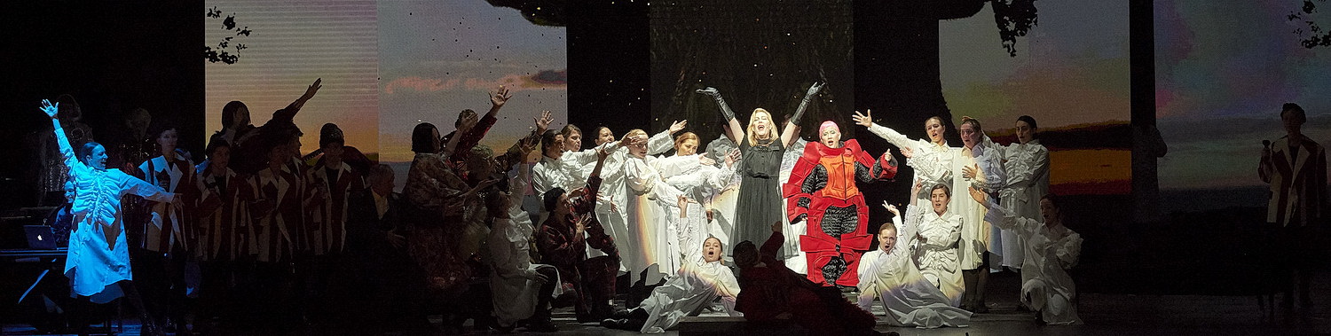 All das wird in einer Glanz­leistung vom Orchester der Wiener Staatsoper unter dem sachkun­digen und völlig exakt schla­genden Dirigenten Matthias Pintscher präsen­tiert. Mit dem Chor, der Choraka­demie und der Opern­schule der Wiener Staatsoper hat der Dirigent einen Riesen­ap­parat zu bewegen. Er macht das bei seinem Debüt im Haus mit solcher Ruhe, Präzision und Übersicht, als ob es ein obligates Reper­toire­stück wäre. Seine Souve­rä­nität rührt wohl auch daher, dass er nicht nur ein ausge­suchter Experte für Zeitge­nös­si­sches ist, sondern selber Komponist.