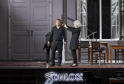 Und so sieht man einen öden, einstöckigen Gefängnistrakt voll Tristesse mit vergitterten Zellen, turnenden Häftlingen und stetigen brutalen Gewaltakten: Es sind die Gralsritter in hässlicher Häftlingskleidung, die hier in ihrer Gedankenwelt eingesperrt sind. Auch Gurnemanz, der sich ständig selbst ritzende, blutverschmierte Amfortas und später auch Parsifal sind offensichtlich Häftlinge. Parsifal hat keinen Schwan, sondern einem Mithäftling mit einer Federkleid-Tätowierung mittels Rasierklinge die Halsader durchgeschnitten, als dieser sich ihm unsittlich nähern wollte. Das sieht man detailliert grausam auf drei großen Projektionsflächen über der Bühne. Apropos Projektionen: Fast ständig flimmern diese zusätzlich, nerven zunehmend und lenken von der eigentlichen Handlung ab: Massige Körper von Häftlingen in allen Lebenslagen mit Tätowierungen von Symbolen aus der Geschichte werden gezeigt, wie Speere, Kelche, eine Dornenkrone aus Stacheldraht und Ähnliches. Oft wird der junge, in Schneefeldern, Betonbunkern oder im Gefängnishof herumstreifende junge Parsifal gezeigt. Apropos junger Parsifal: Hier kam der Regisseur auf die nicht mehr neue und schon viel zu oft praktizierte Idee, die Titelfigur zu verdoppeln, was nur teilweise funktioniert: Der „alte“ Parsifal erinnert sich, meist an der Rampe singend und kaum agierend, an seine Jugend und seinen ehemaligen Gefängnisaufenthalt. Und so fungiert der „junge“ Parsifal, der vom Schauspieler Nikolay Sidorenko überzeugend dargestellt wird, als Alter Ego. Er wird von Mithäftlingen zusammengeschlagen, rennt hektisch oder turnt sinnlos herum und lässt sich von Kundry beinahe verführen. Apropos Kundry: Die wird als eine kühle Reporterin dargestellt, die ständig fotografierend eine Gefängnisreportage für ein Magazin „Schloss“ recherchiert, aber auch Substanzen einschmuggelt und vom Schicksal des jungen Parsifal schwer beeindruckt ist. Und so kehrt sie im zweiten Akt in die Redaktion statt in ein Zauberschloss zurück, wo die Blumenmädchen auch Mitarbeiterinnen und alle hinter dem Jungen her sind. Geleitet wird das Magazin vom unsympathischen Medienmogul Klingsor, den sie nach der missglückten Verführungsszene zum Schluss einfach erschießt. Speer braucht Serebrennikov natürlich auch keinen, wozu auch? Bei der Gralsenthüllung wird ein Kelch aus einem Postpaket für einen Häftling bei der Kontrolle durch die Gefängniswärter ausgepackt und hochgehalten. Zum Finale taucht der Gral überhaupt nicht mehr auf, da werden stattdessen von Parsifal alle Zellentüren geöffnet und den vermutlich politischen Gefangenen wird als schöne Schlussgeste die Freiheit geschenkt. Sie haben auch die Hölle in sich überwunden. Die bekehrte Kundry sinkt nicht tot zu Boden, sondern humpelt mit Amfortas ins Licht. Nur Parsifal bleibt zurück. War das alles nur ein Traum? Es ist müßig, darauf hinzuweisen, dass sich der originale Text kaum mit diesem Konzept verträgt.